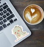 If you love all things adorable and refreshing, Bubba is your new bestie. This sticker features our lovable green dino clutching his favorite boba drink with a sip and even bigger vibes. Perfect for decorating water bottles, laptops, phone cases, kindles or notebooks – anywhere you want a touch of cuteness and personality!